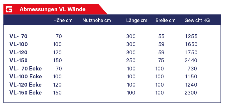 Geurs Beton ist bekannt für seine VL- Wände. Im Volksmund auch bauchige Wand genannt. Diese unbewehrten Wände sind aufgrund ihrer Dicke und der Verarbeitung durch Hochleistungsbeton enorm fest.Hierdurch sind sie günstig in der Anschaffung. Die VL- Wände sind in den Höhen 70-100-120 und 150 cm erhältlich.